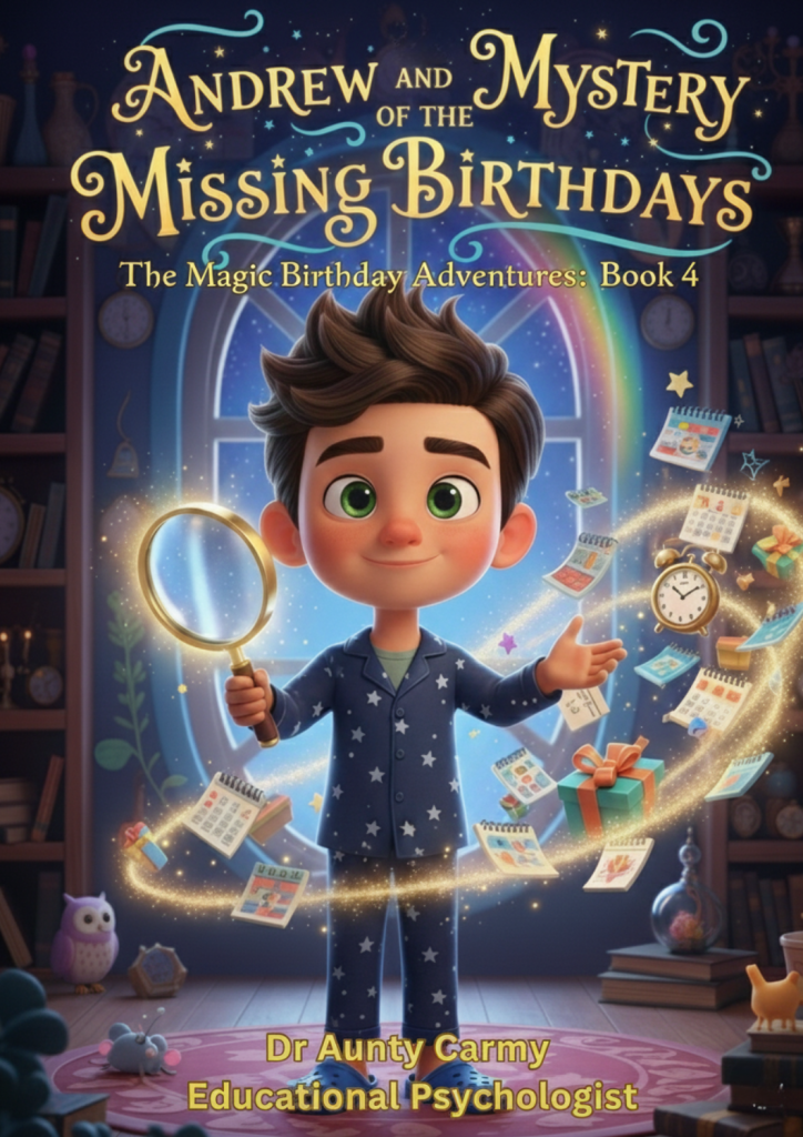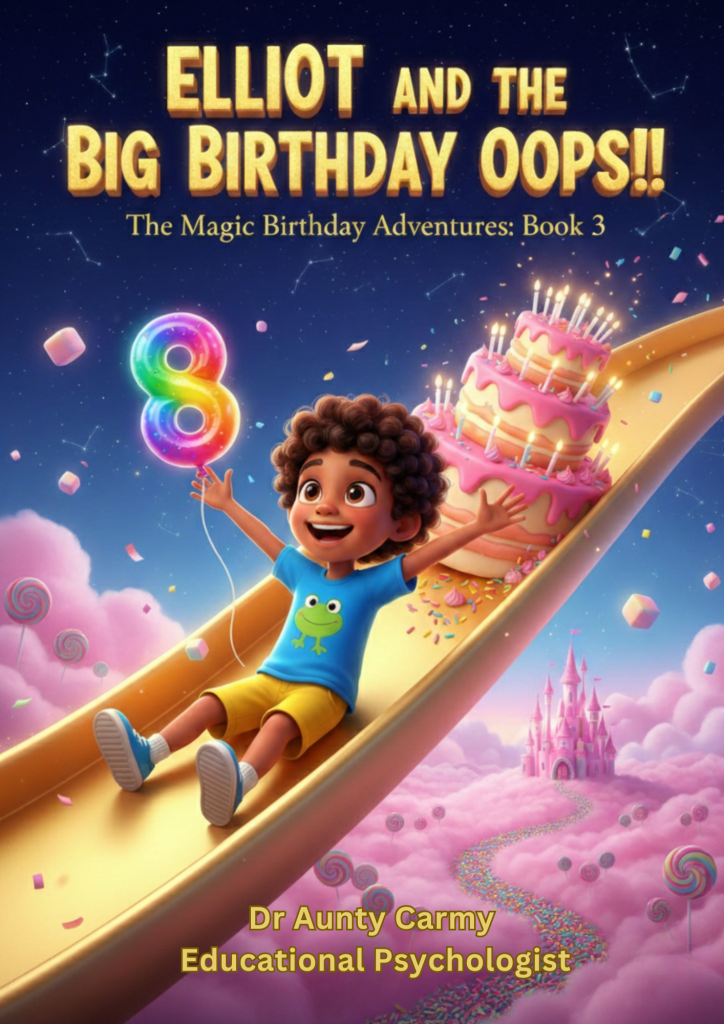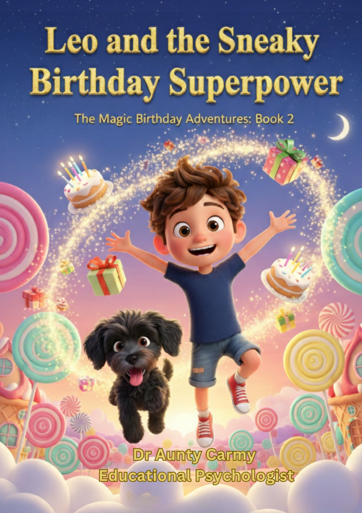 On the night before his sixth birthday, Noah is whisked away to the whimsical Birthdayland, a place where cakes float and balloons bark. However, the world’s magic is fading because kindness is in short supply. To restore the wonder, Noah must face a frustrating magical puzzle that tests his temper. By learning to breathe, stay patient, and choose kindness, he earns the powerful Kindness Keys. This enchanting story, written by educational psychologist Dr Aunty Carmy, gently teaches children that managing big emotions is the ultimate superpower, helping them unlock their own inner magic and strength.